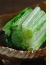 - 冷えた出汁に菜味夏を味がしみるまでつけておく。味がしみたら器に盛り、鰹節をかければ出来上り。